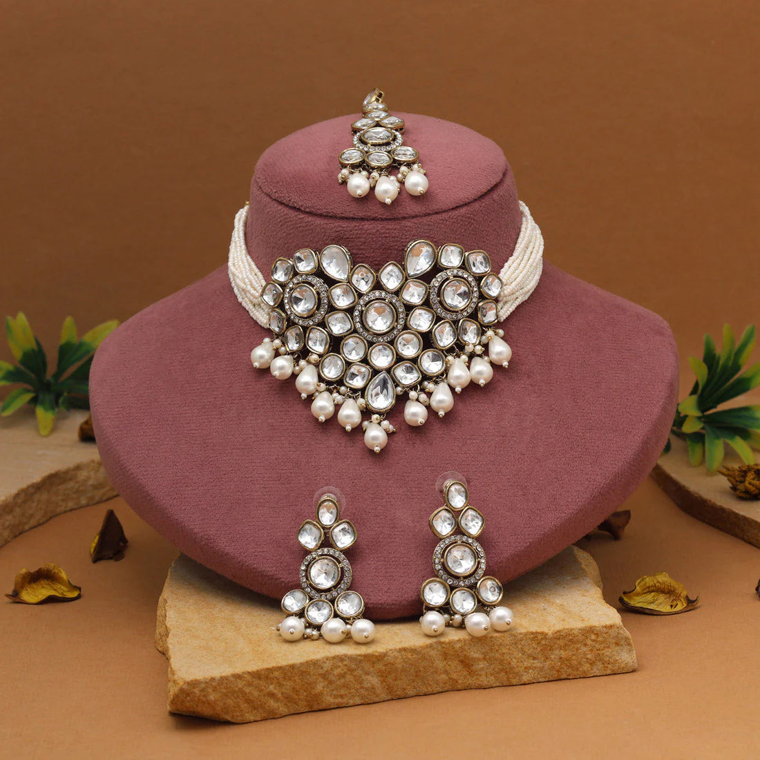 Kundan or Polki Chokers – These conventional Indian chokers complement silk and closely embroidered sarees, especially for weddings or festive occasions.