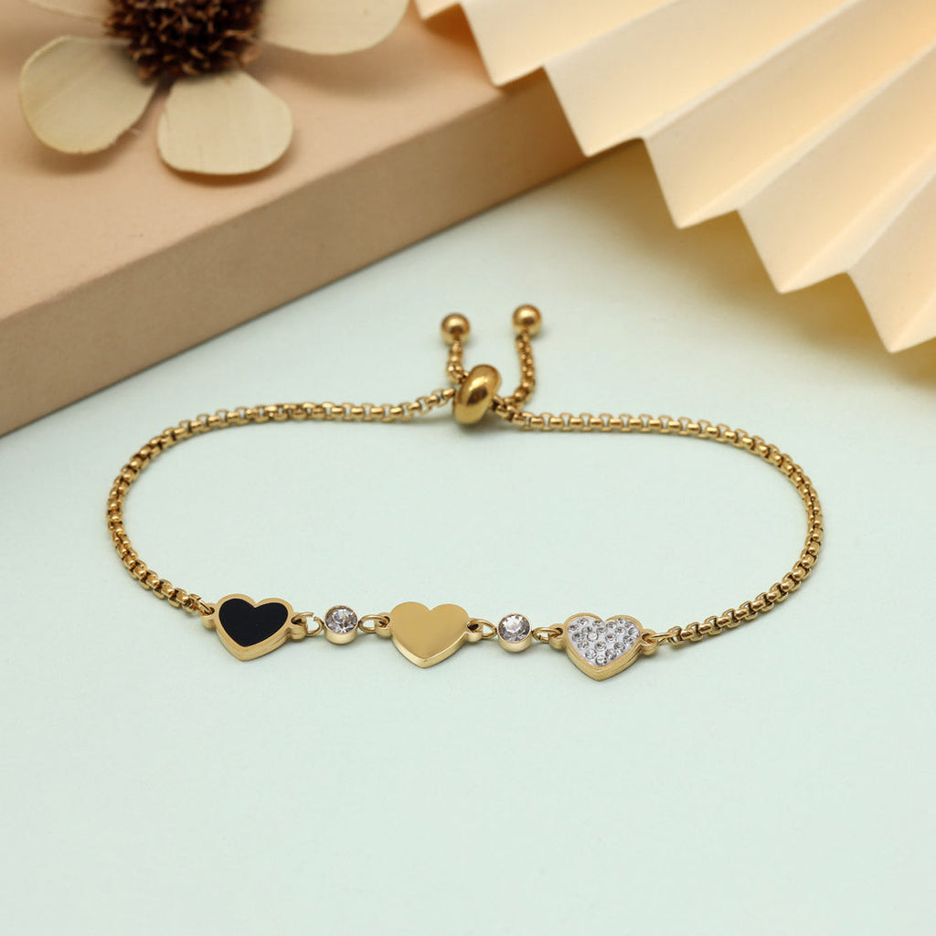 Bracelet Size: Adjustable | Color: Black | Stone: American Diamond | Metal: Alloy With Good Quality Gold Plated | Gross Weight: 8.00 Grams | Package Content: 1 Piece Of Bracelet