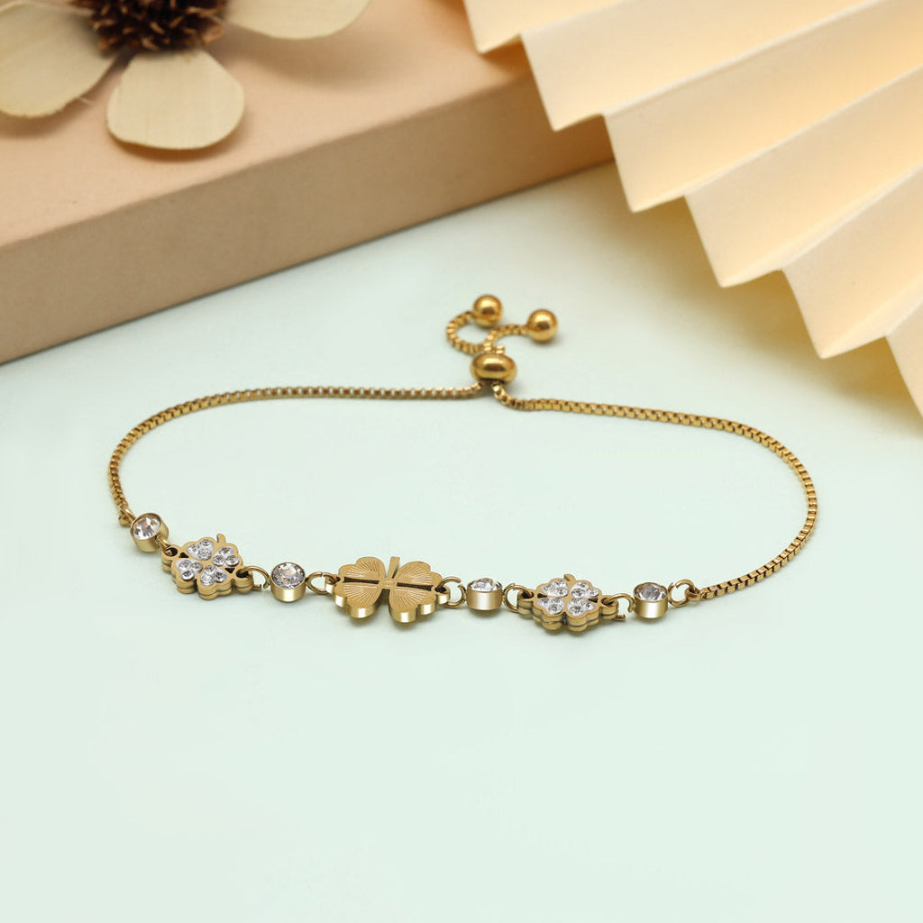 Bracelet Size: Adjustable | Color: Gold | Stone: American Diamond | Metal: Alloy With Good Quality Gold Plated | Gross Weight: 7.00 Grams | Package Content: 1 Piece Of Bracelet