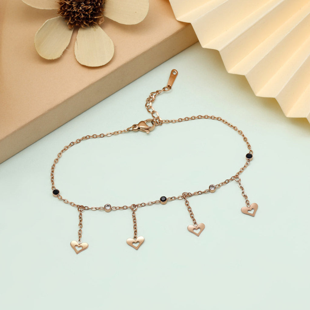 Bracelet Size: Adjustable | Color: White | Stone: American Diamond | Metal: Alloy With Good Quality Rose Gold Plated | Gross Weight: 4.00 Grams | Package Content: 1 Piece Of Bracelet